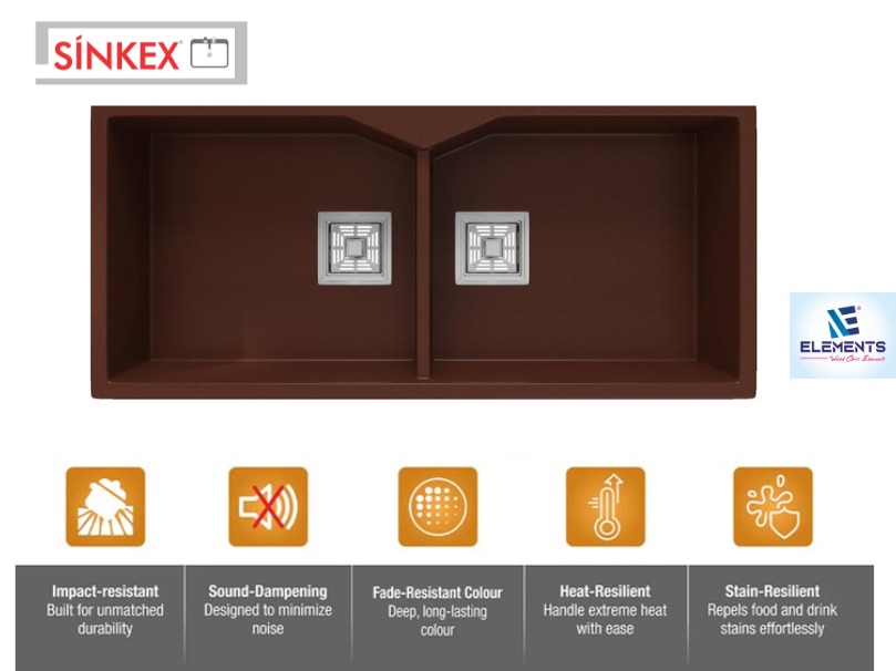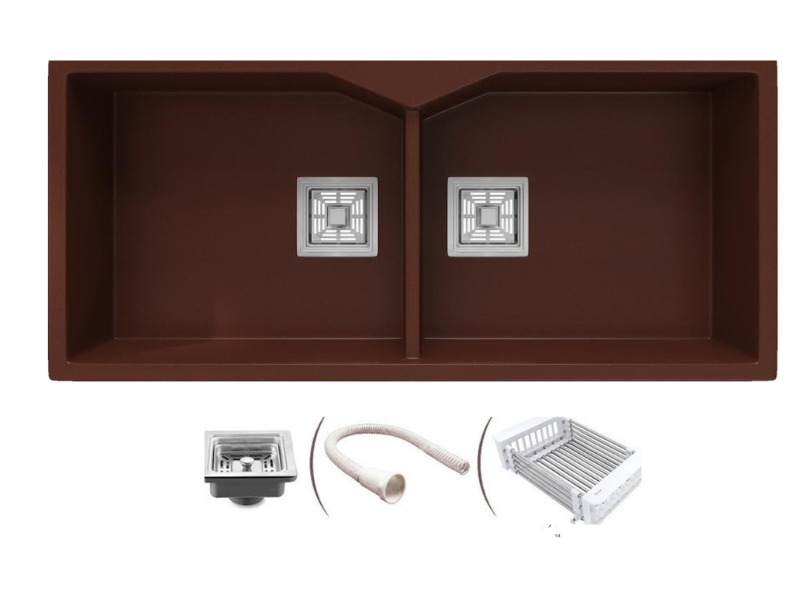- MATERIAL: Crafted from 14mm thick quartz and resin, this rectangular single-bowl sink offers durability, hygiene, and a bold Matte Double Quartz Sinks Bowl Brown finish.