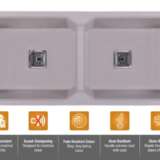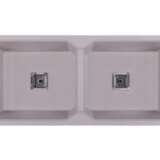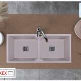 - MATERIAL: Crafted from 15mm thick Quartz and resin, this rectangular single-bowl sink offers durability, hygiene, and a bold Double Bowl Sand rosa finish.