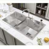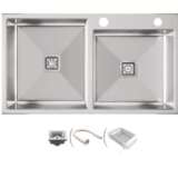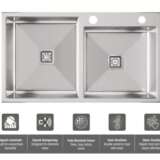 - Handcrafted from Handmade Double Bowl with Tap Hole Kitchen Sink
