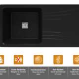 - Dense quartz build absorbs sound, minimizing water & utensil noise.