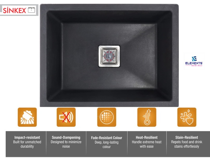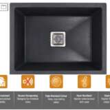 - Dense quartz build absorbs sound, minimizing water & utensil noise.
