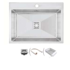 - PACKAGE CONTENTS: An all-inclusive set that includes, 1 sink bowl, 1 stainless steel sink coupling, 1 PVC waste pipe (30 inches), and 1 adjustable vegetable basket.