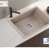 - Crafted from 10mm thick Quartz and resin, this rectangular single-bowl sink offers durability, hygiene, and a bold Matte Single Bowl Sand choco finish.