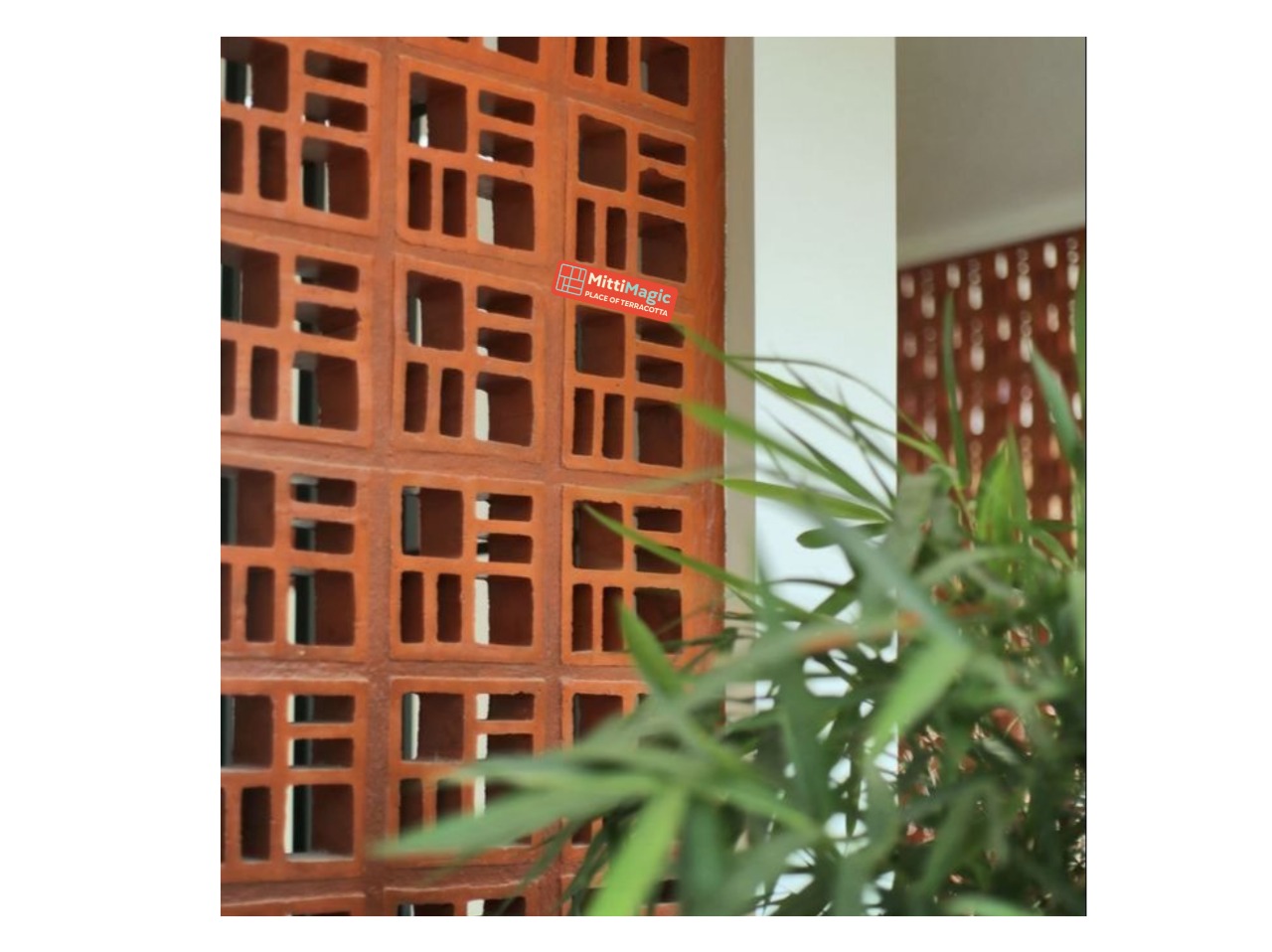 Terracotta jali tiles are decorative clay tiles that feature intricate, perforated designs, often used in traditional and contemporary architecture. These tiles are made from fired clay, giving them their distinctive earthy, reddish-brown color, and are designed with cut-out patterns (called “jali”) that allow for natural ventilation and light filtration. - APPLACTIONS :